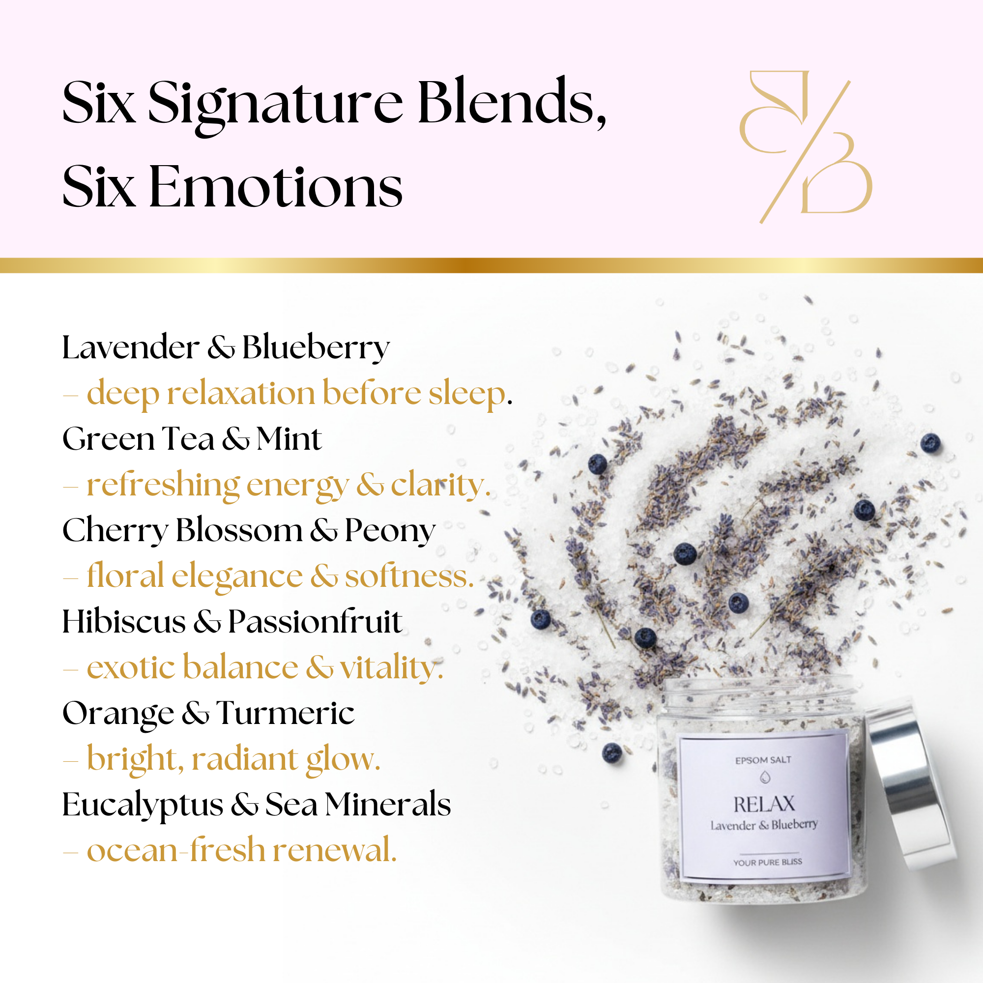 Indulge in a spa-like ritual at home with the Jane & Bloom Epsom Salt Bath Gift Set, a luxurious collection of six aromatherapy blends crafted with pure Epsom salt, premium essential oils, and natural botanicals.